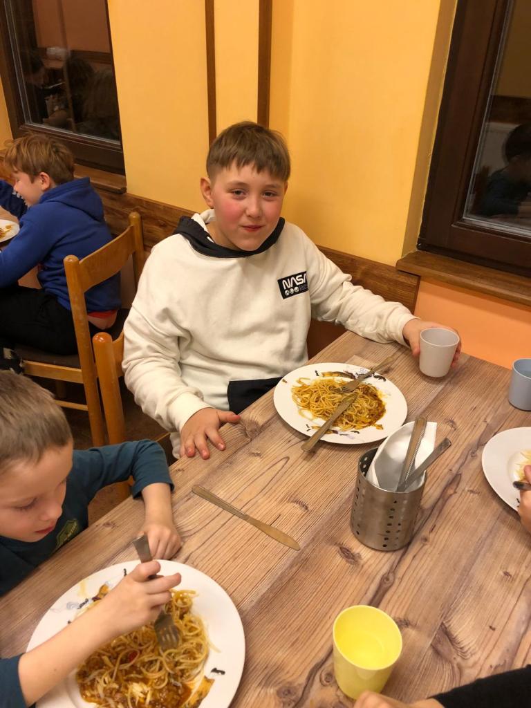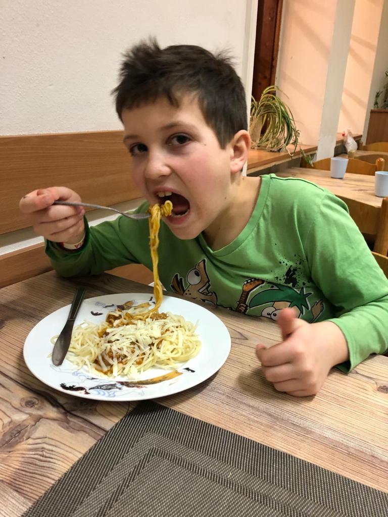 Výborně nám tady vaří :-) Dnes k obědu rajská a k večeři špagety!