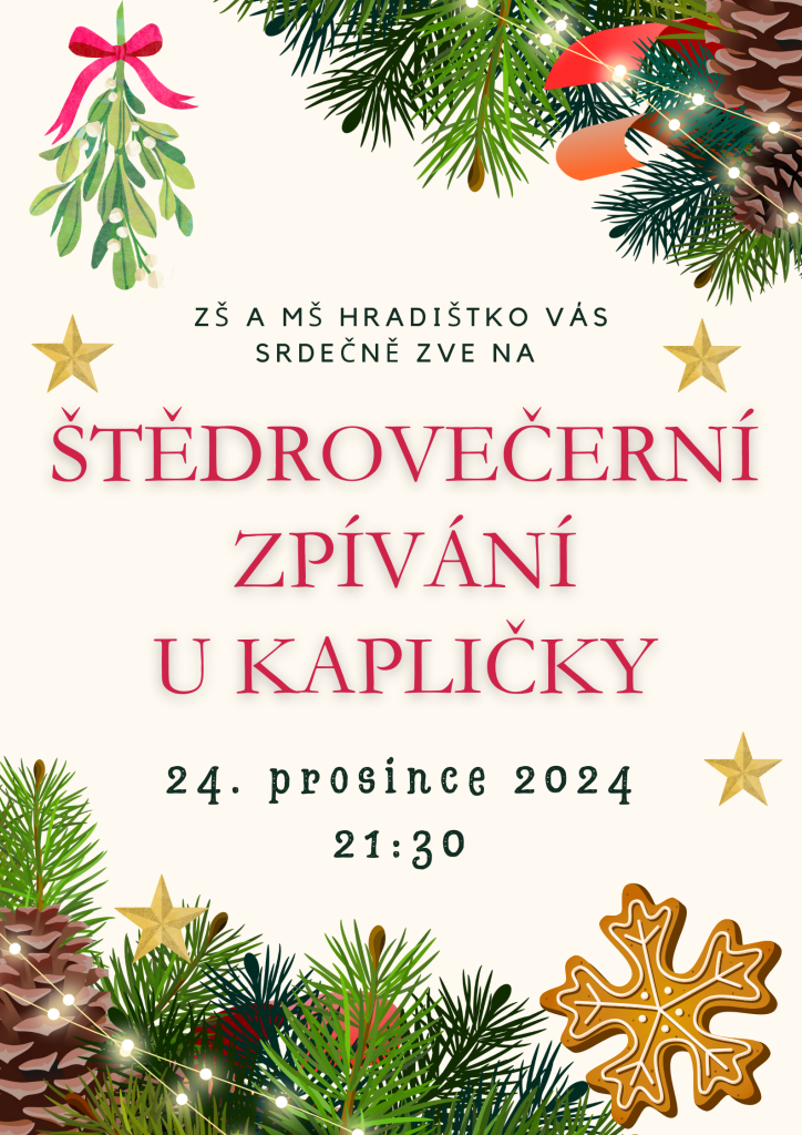 Srdečně zveme na Štědrovečerní zpívání u kapličky, které se koná 24.12.2024 v 21:30 hodin.